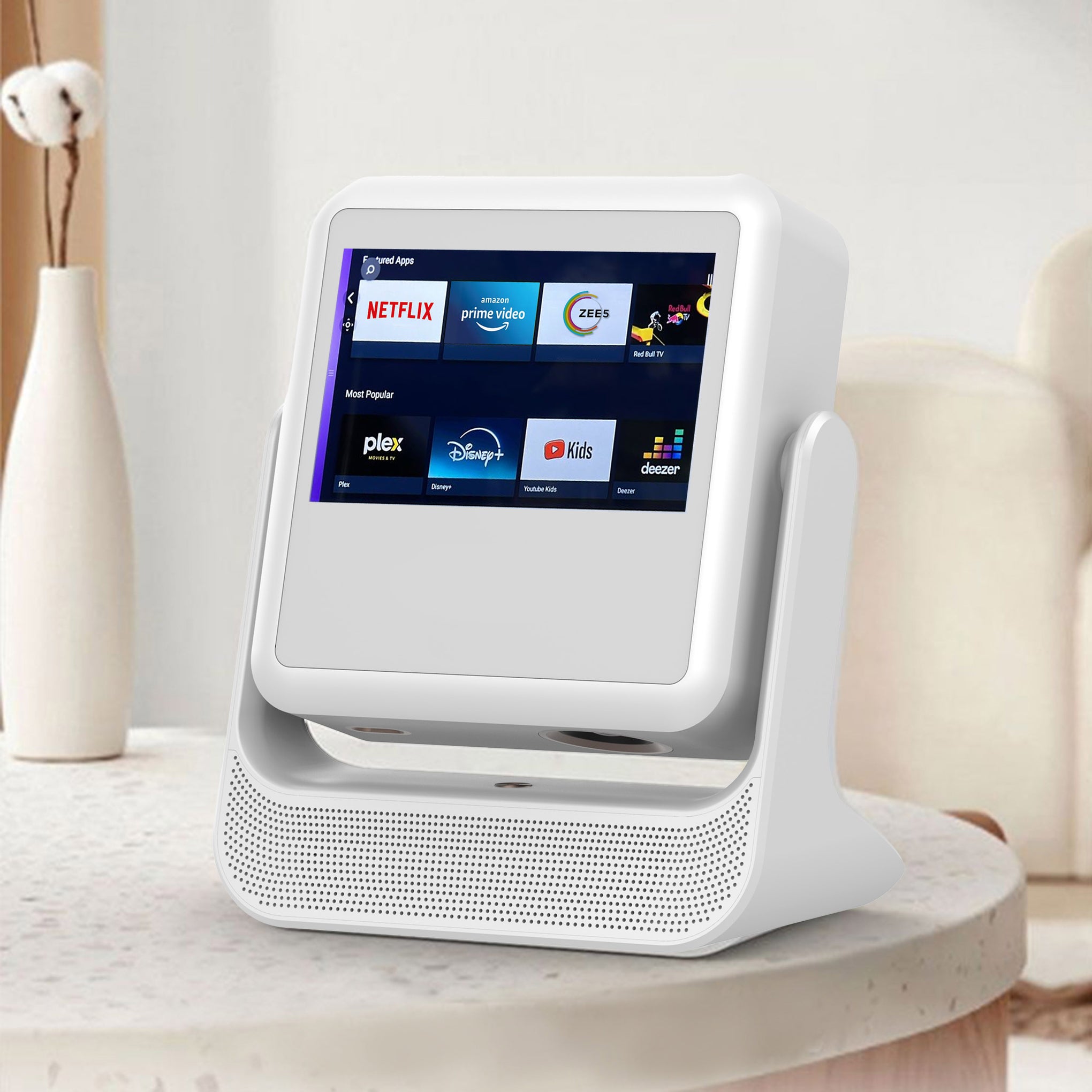 - Son 360° 10W intégré — assez puissant pour remplir une pièce. Pas besoin d'enceinte Bluetooth en plus.